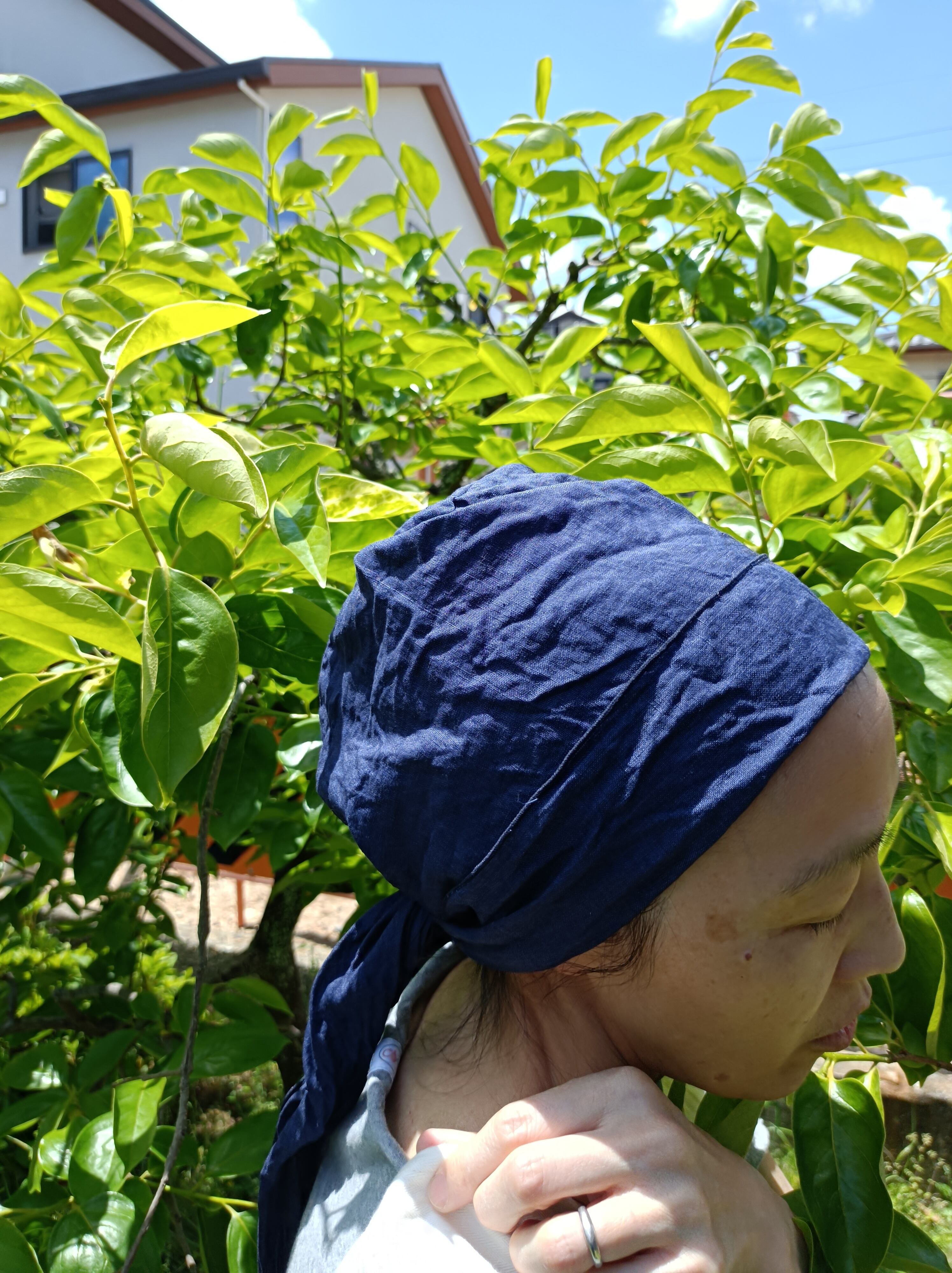 キッチンはもちろんですが、ガーデニングや畑仕事にとっても便利な被り物。